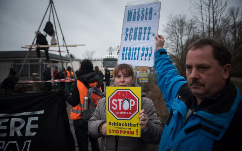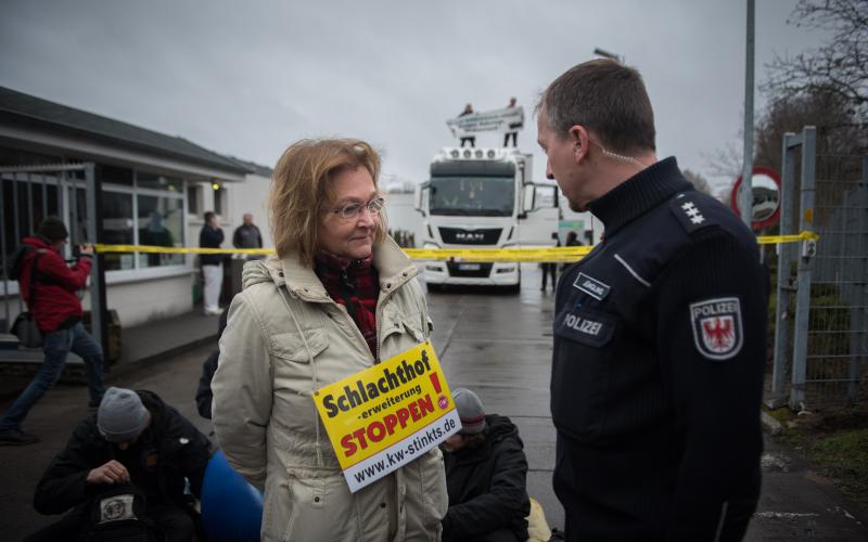 Durch die industrielle Tierproduktion leiden sowohl die Umwelt, als auch Tiere und Menschen, und am Ende wird qualitativ schlechte Nahrung produziert. Das Volksbegehren gegen Massentierhaltung in Brandenburg war ein Erfolg, bleibt aber jetzt in der Bürokratie stecken. Deshalb ist es wichtig, dass der Protest dort spürbar wird, wo Schlachtanlagen ausgebaut werden, obwohl die Tierproduktion drastisch reduziert werden müsste.