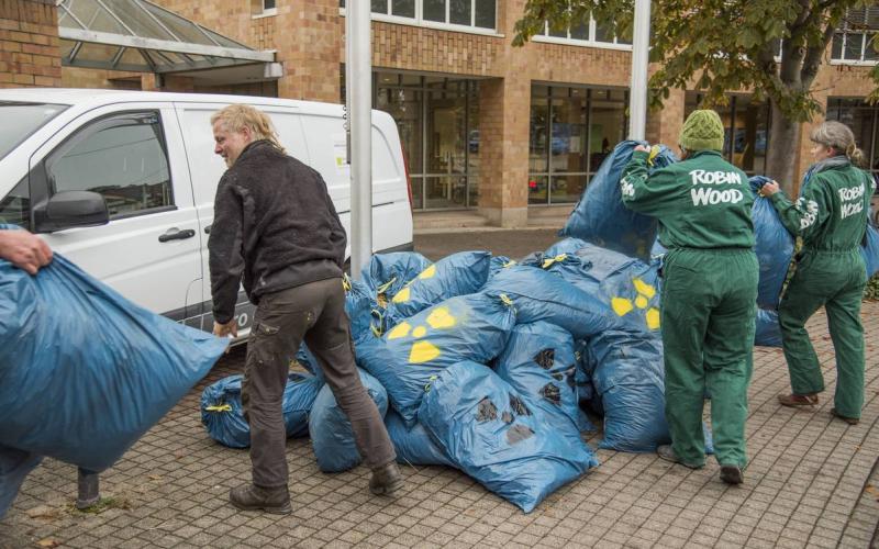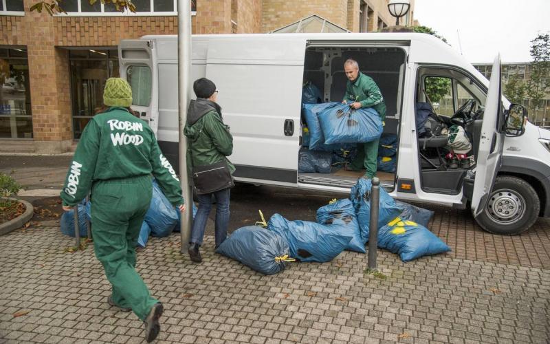Eine Müll-Lieferung ging heute Vormittag an die Adresse des grün geführten Landesumweltministeriums in Stuttgart. Der Absender: ROBIN WOOD-AktivistInnen aus der Region. Der Umfang der Lieferung entsprach den abgebrannten Brennstäben aus der Jahresproduktion der baden-württembergischen Atomkraftwerke Neckarwestheim und Philippsburg. „Wir sind es leid, nur zuzusehen, wie jeden Tag neuer gefährlicher Müll produziert, durch die halbe Republik transportiert und irgendwem vor die Haustür gekippt wird. Wir drehen den Spieß jetzt um!“, heißt es in einem Flugblatt der AktivistInnen.