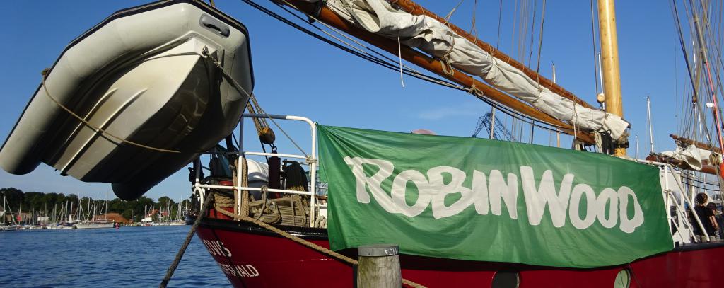 Dort angekommen, erklettern zwei Menschen die Seile des Segelschiffes und hängen dort ein Transparent mit der Aufschrift „Saubere Kohle ist eine dreckige Lüge“ auf. Das Transparent macht auf das Steinkohlekraftwerk im Rostocker Überseehafen aufmerksam. Die Kohle kommt aus aller Welt direkt per Schiff in den Hafen. Ob aus Kolumbien, Südafrika oder Russland – Steinkohle wird meist unter menschenrechtswidrigen Bedingungen in anderen Teilen der Welt abgebaut, um unsere Wirtschaftsweise sowie den Klimawandel zu befeuern.