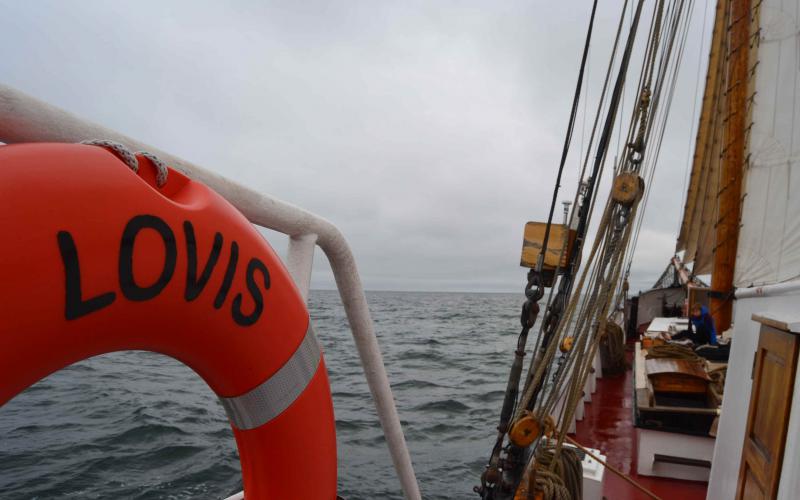 Raus aufs Meer, rein in den Wind – das war das Motto bei der Abreise. Der Wind war stark, so stark, dass wir die Segel verkürzen mussten, um das Schiff gut kontrollieren zu können. Das forderte nochmal alle mit anzupacken und Knoten an den richtigen Stellen zu setzen. Bei Regen sind die Segel ein wenig schwerer, der Boden rutschiger und die Taue lassen sich schwerer fest machen – doch mit Ausdauer und Teamgeist konnten wir auch diese Aufgabe meistern.