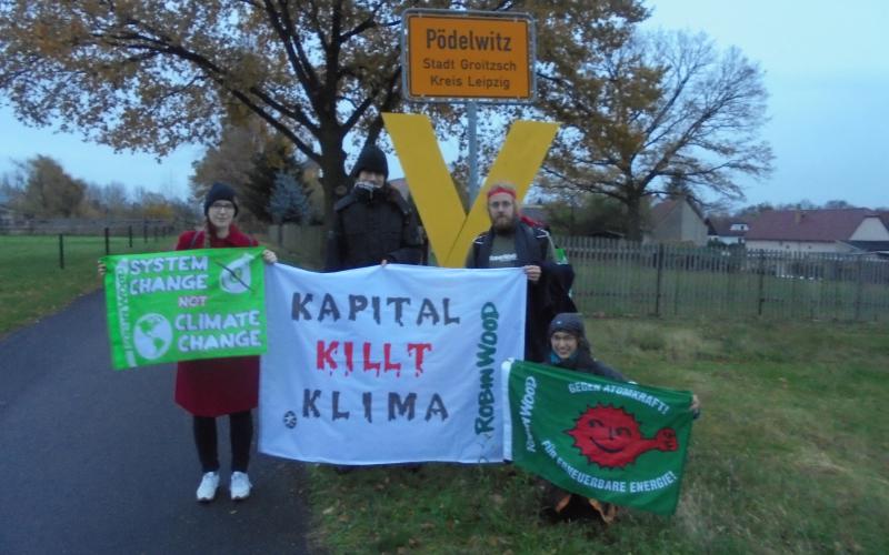 Für uns ist klar: Um den menschengemachten Klimawandel zu stoppen, muss wesentlich schneller aus der Braunkohle ausgestiegen werden, als zurzeit von der Politik diskutiert. Jedes weitere abgebaggerte Dorf ist in dieser Situation blanker Irrsinn. Wirksamen Klimaschutz kann es nur geben, wenn wir selbst die Klimakiller stoppen! Robin Wood war sicherlich nicht das letzte Mal vor Ort in Pödelwitz...