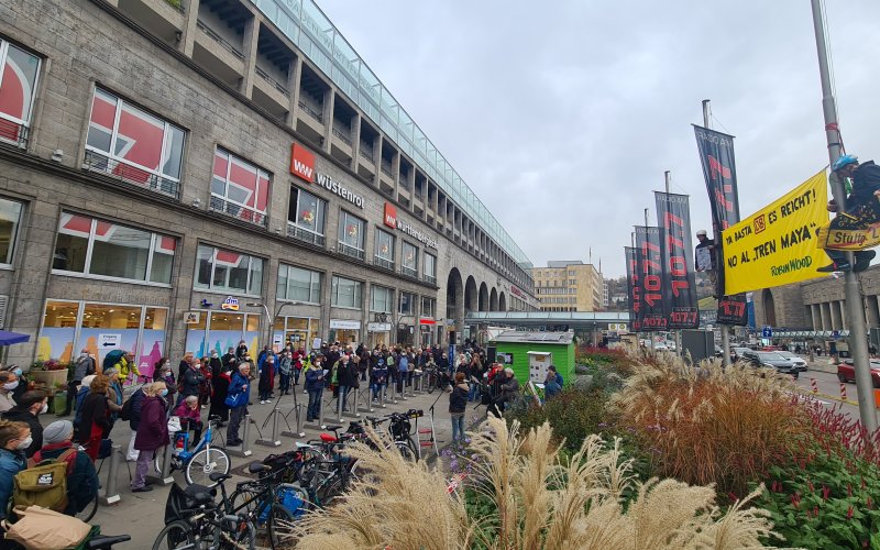 In Stuttgart hat der jahrelange Protest gegen das DB-Megaprojekt Stuttgart21 Geschichte geschrieben. Im Vorfeld von Stuttgart21 wurde den Stuttgarter*innen Bürgerbeteiligung, Umweltverträglichkeitsprüfungen und Transparenz versprochen - alles heiße Luft, wie sich herausstellte. Auch in Stuttgart haben die Gegner*innen von Stuttgart21 trotz Demokratie und Rechtsstaat ein völlig illegitimes und widerrechtliches Vorgehen der Polizei erleben müssen: legitimer demokratischer Protest wurde angegriffen, Bäume unter Missachtung von Artenschutzvorsschriften gefällt, es wurden sogar Menschen verletzt. Eine Unterstützung globaler Kämpfe gegen ähnliche Megainfrastrukturprojekte liegt also nahe, gerade weil die geplanten Zerstörung in Mexiko ein noch viel größeres Ausmaß hat und mexikanische Aktivist*innen, die sich dem Megaprojekt entgegenstellen, massiv bedroht und verfolgt werden. ROBIN WOOD-Aktivistin Angelika erklärt ihre Solidarität mit den Tren Maya-Gegner*innen: "Wir haben es hier in unserem eigenen Lebensraum schmerzhaft und brutal erleben müssen und wir fühlen uns an der Seite der Indigenen und sagen mit ihnen, dass es unser gemeinsamer Kampf ist. Wir mit ihnen und sie mit uns - gemeinsam gegen die Missachtung einer lebendigen Welt."