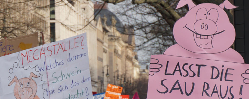 ROBIN WOOD engagiert sich gegen die industrielle Tierproduktion. Für Sojafuttermittel für unsere Massentierhaltung werden Tropenwälder zerstört. Hiesige Ökosysteme leiden unter der bundesdeutschen Güllewirtschaft. Von den negativen sozialen Folgen ganz zu schweigen. Am 16. Januar 2019 haben wir in Hannover den offenen Brief des Biolandbauern Karl-Heinz Hanken aus Vechta an die Landwirtschaftsministerin des Landes Niedersachsen, Barbara Otte-Kinast, übergeben.