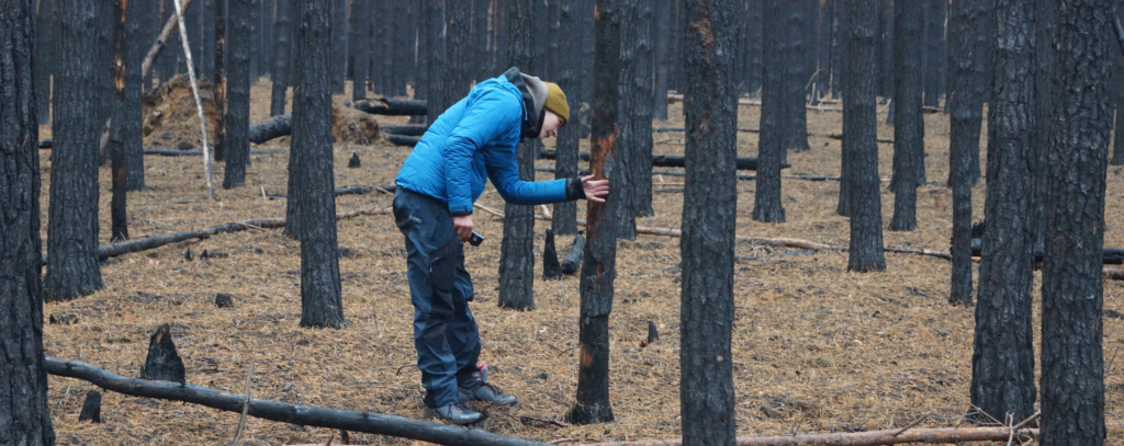 Wir wollen auch schauen, ob man diese Sukzession und das Wachsen eines Waldökosystems günstig beeinflussen und beschleunigen kann. Als Material steht die mehr oder weniger verbrannte, abgestorbene oder absterbende Holzbiomasse zur Verfügung.