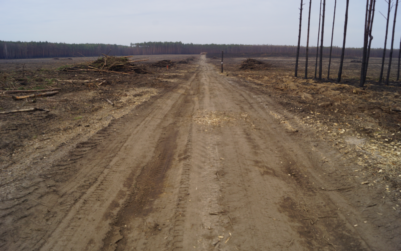 Seit dem letzten Besuch von ROBIN WOOD auf den Waldbrandflächen rund um Treuenbrietzen in Brandenburg ist dort einiges passiert. Es kristallisieren sich vor allem zwei forstwirtschaftliche Wege heraus, die unterschiedlicher nicht sein könnten. Teile der vom Brand betroffenen Privatwälder wurden komplett gerodet und von Biomasse befreit. Mitte März wurde begonnen, die Flächen mit neuen Setzlingen zu bepflanzen. Der natürlichen Selbstheilung eines Ökosystems wird kein Raum gegeben und wirtschaftliche Ziele stehen im Vordergrund.