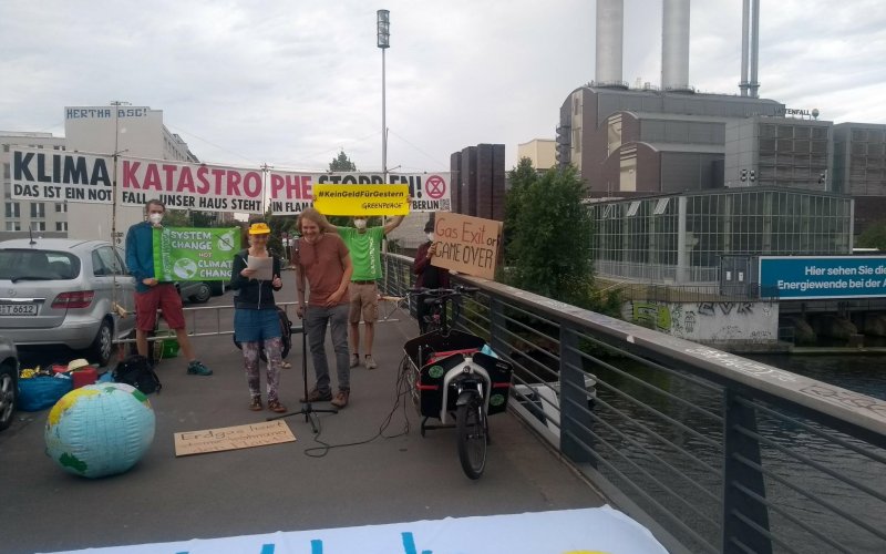 Protestaktion von GasExit und ROBIN WOOD vor Erdgaskraftwerk von Vattenfall in Berlin-Mitte