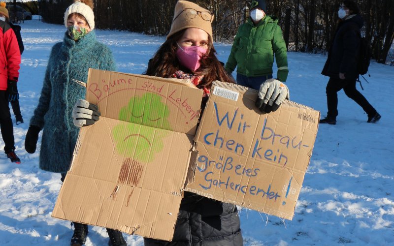 Ein Aktionsbündnis setzt sich schon seit Anfang 2019 für den Erhalt der öffentlichen Grünanlage und des Baumbestandes ein. Der Protest zielte nicht darauf ab, die Erweiterung oder den Neubau von Mitarbeiterwohnungen verhindern. Der Investor sollte vielmehr von einer umweltverträglicheren Alternative überzeugt werden. Zu diesem Zweck engagierte das Bündnis einen Architekten, der eine gute Lösung entwickelte, um Bäume, Grünanlage und Gartencenter nebeneinander existieren zu lassen. Diesen Plan wollte der Investor jedoch nicht umsetzen. Stattdessen hat er bereits einen Antrag auf Fällung einiger Bäume auf dem Areal eingereicht. Diese sollen im Zeitraum vom 11. Februar bis Ende Februar gefällt werden.