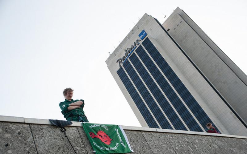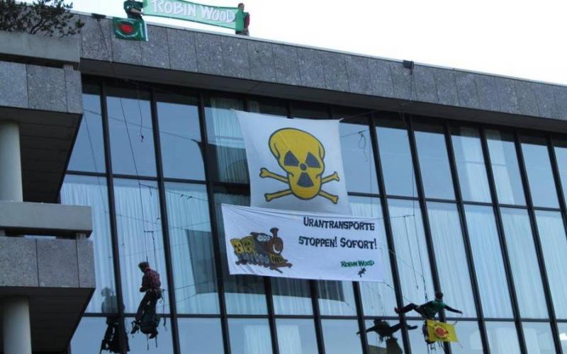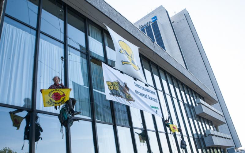 ROBIN WOOD-AktivistInnen steigen Atom-Lobby aufs Dach