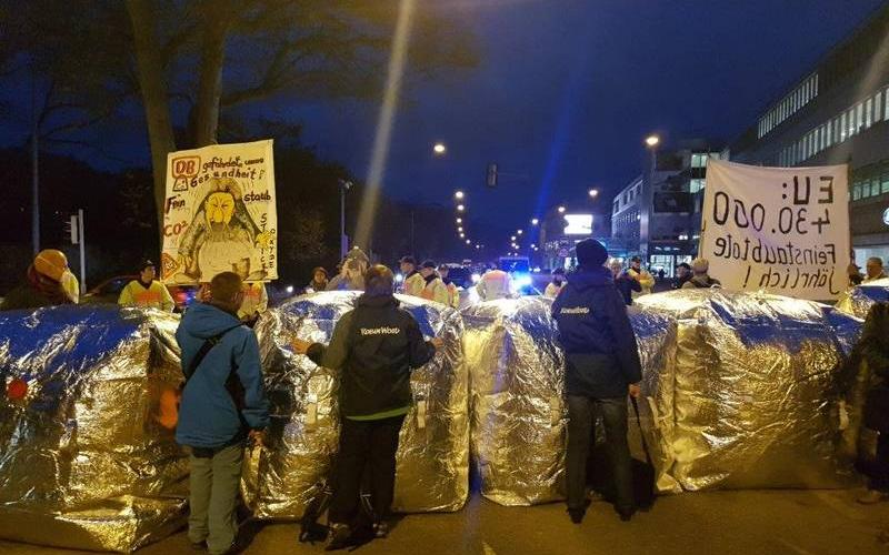 Symbolische Straßenblockade gegen Dreckluft am Neckartor in Stuttgart