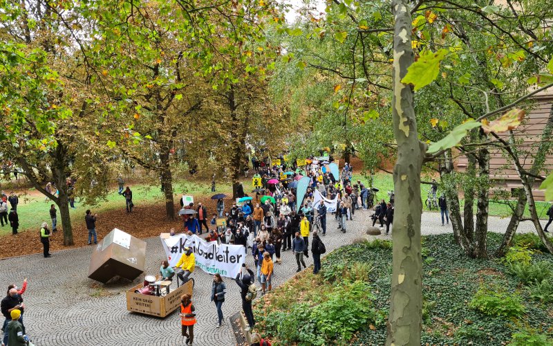 Den globalen Klimastreik unterstützen ROBIN WOOD-Aktivist*innen heute auf der Fridays for Future-Demonstration in Stuttgart. Im Stadtgarten spannten sie ein Banner mit der Aufschrift „Klimazerstörung made in Stuttgart – Kein Kohlekraftwerk im Mangrovenwald“. Der Protest richtet sich gegen das Stuttgarter Ingenieurbüro Fichtner. Das Unternehmen unterstützt den Bau des umwelt- und klimaschädlichen Kohlekraftwerks Rampal in Bangladesch u.a. mit Beratungsleistungen. Fichtner hat für heute Vertreter*innen aus Politik und Wirtschaft zu einer Diskussion eingeladen mit dem Titel „Zero Emission – Strategien, Chancen und Konsequenzen“. An dieser Veranstaltung, die aufgrund der Corona-Pandemie online stattfindet, nimmt auch Baden-Württembergs Umweltminister, Franz Untersteller, teil.