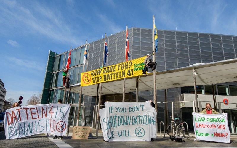 Protestaktion vor der finnischen Botschaft / Druck auf Betreiber wächst, das Kohlekraftwerk zu schließen