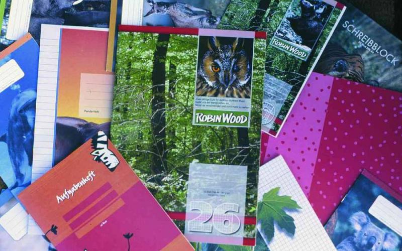 Wer Wald und Klima schützen will, wählt zum Schuljahresanfang Hefte und Blöcke aus Recyclingpapier. Dafür müssen keine Bäume gefällt werden. Schulmaterialien aus Recyclingpapier sehen zudem prima aus, verdienen für die Qualität die Note „sehr gut“ und können sogar preiswerter sein als solche aus Primärfasern. Darauf weist die Umweltorganisation ROBIN WOOD hin.