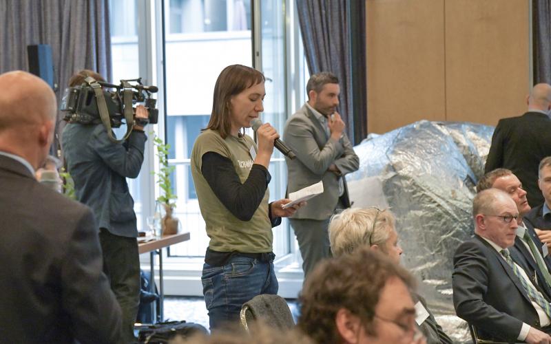 ROBIN WOOD fordert die Teilnehmer*innen des Nationalen Waldgipfels auf, für mehr naturnahe, widerstandsfähige Wälder zu sorgen und dem Waldnaturschutz mehr Gewicht zu geben. Zu dem Waldgipfel hatte Bundesforstministerin Julia Klöckner eingeladen. Eine Protestaktion mit zwei Riesenwürfeln – einen mit der Aufschrift „Waldweg!“, den anderen mit dem durchgestrichenen Wort „Holzweg“ – sowie ein kurzer spontaner Redebeitrag bei einem Diskussionsplenum am frühen Nachmittag wurden von den Veranstaltern nach einer knappen Minute unterbunden.