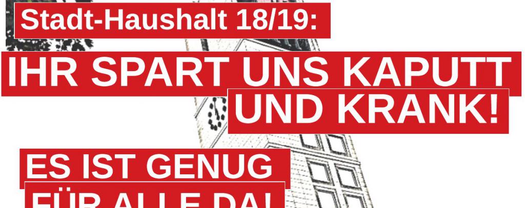 Unter dem Motto "Ihr spart uns kaputt und krank - ES IST GENUG FÜR ALLE DA!" demonstrieren verschiedene soziale und ökologische Spektren für einen gerechten Haushalt 2018/2019 für die Stadt Stuttgart.