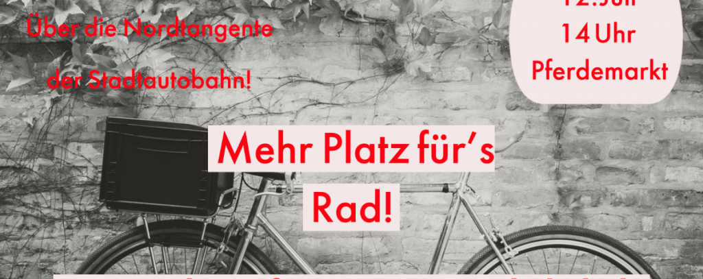 In einer Welt, die durch Platzmangel in Städten gekennzeichnet ist, in der immer wieder Grenzwerte für die Belastung der Luft durch Stickoxide und Feinstaub überschritten werden und die sich mit der Klimakrise als einer, in dieser Form nie dagewesenen Herausforderung konfrontiert sieht, muss Mobilität viel mehr leisten, als es das Auto kann. Aus diesem Grund rufen wir gemeinsam mit vielen anderen Gruppen und Organisationen zu einer Fahrrad-Demo am 12. Juli 2020 in Oldenburg auf! Wir wollen genau dort demonstrieren, wo die fehlgeleitete autozentrierte Verkehrspolitik stadtweit sicht- und ständig hörbar ist: Auf dem Oldenburger Stadtautobahnring, genauer dessen Nordtangente.