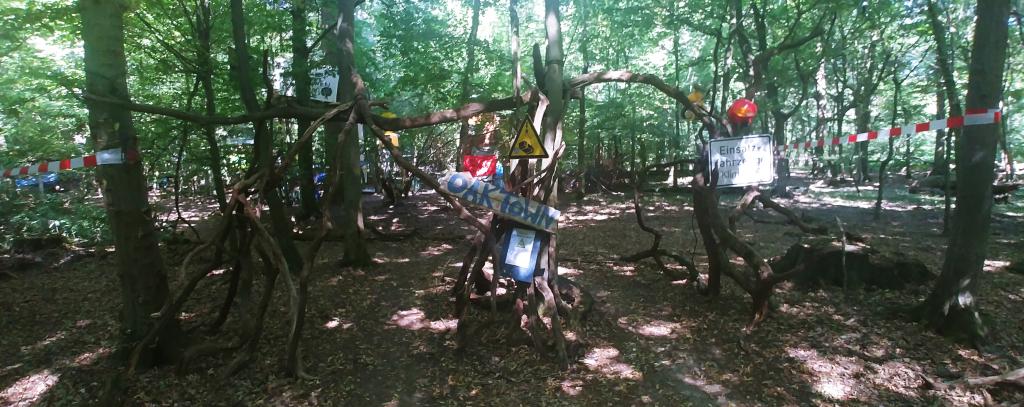Michael und Eva legen wert darauf, dass der Spaziergang auch für Familien und Kinder geeignet ist. Das Ziel ist Oaktown, ein Ort, der von der Polizei verwüstet und zerstört wurde. Aber so einfach lassen wir uns nicht vertreiben. Wir werden wieder viele sein, die sich lautstark einsetzen für den Erhalt des uralten Waldes, der gefällt werden soll für die Förderung einer der klimaschädlichsten Energiequelle der Welt. Wir sind bunt und kreativ und werden wieder und wieder Zeichen setzen, bis das Roden ein Ende hat!